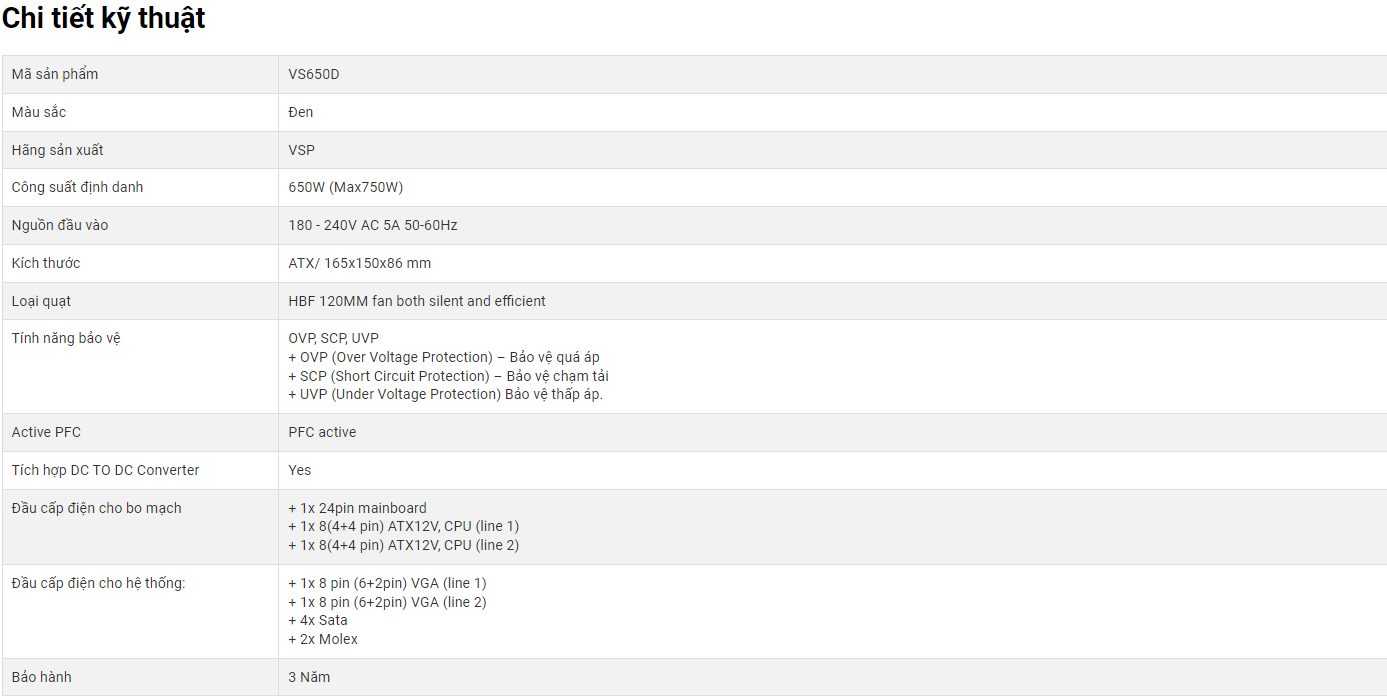 Công suất định danh: 650W (Max750W)