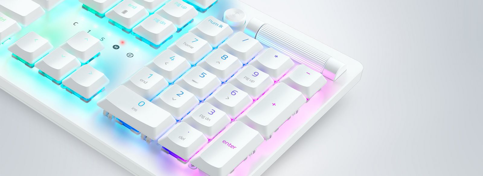 Được thiết kế để cứng cáp hơn so với keycaps ABS doubleshot, với các huyền thoại trông cực kỳ sắc nét và sạch sẽ. Ngoài ra còn có các huyền thoại phụ có đèn nền* để gõ thuận tiện hơn và RGB trên mỗi phím tỏa sáng rực rỡ và đồng đều để tạo ra đèn nền RGB 100%.